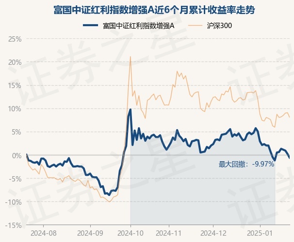 本站消息,1月22日,富国中证红利指数增强A最新单位净值为0.99元,累计净值为3.154元,较前一交易日下跌0.8%。历史数据显示该基金近1个月下跌3.6%,近3个月下跌4.53%,近6个月下跌0.6%,近1年上涨9.87%。该基金近6个月的累计收益率走势如下图: